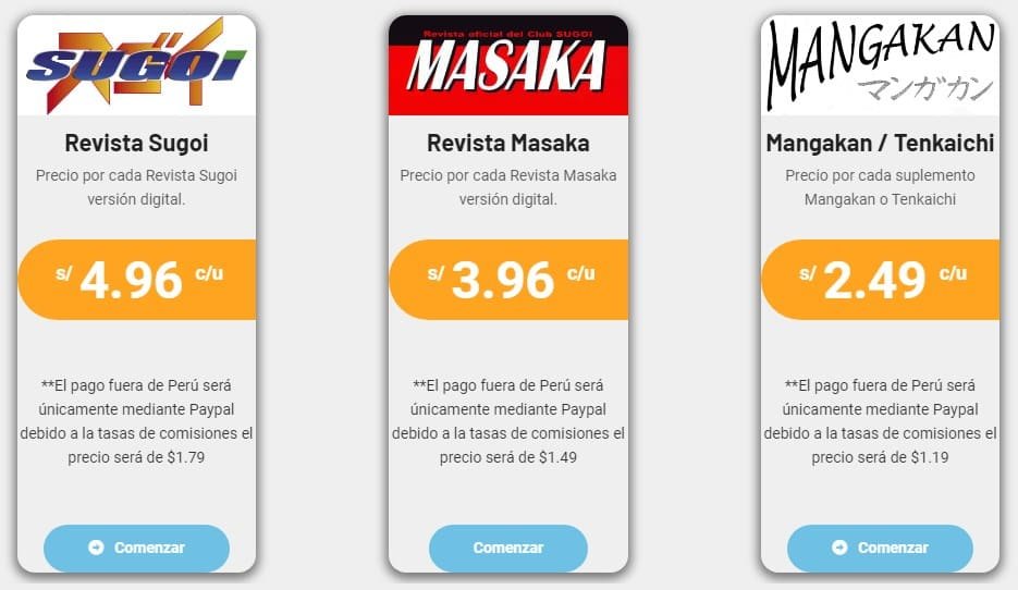 Plata: Recibirás en total 6 Revistas Sugoi y 12 suplementos en formato digital en el transcurso de seis meses.
