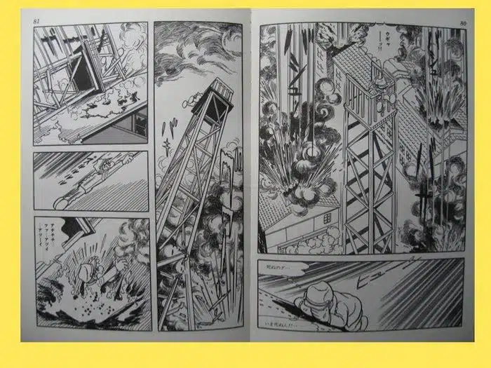 En esos años, el dios del manga era constantemente reprendido por sus superiores, pues se la pasaba dibujando cómics en lugar de hacer su trabajo y un día su castigo consistió en subir a la torre de vigilancia para avisar si veía a los bombarderos B-29 de los Estados Unidos. No obstante, cuando empezó la alarma del ataque aéreo, no tuvo tiempo de bajar quedando expuesto en una de las edificaciones más altas de la fábrica. Entonces, una bomba cayó en el techo a dos metros de él y Tezuka cayó gritando de lo alto de la torre, pero milagrosamente logró sobrevivir. El futuro mangaka describe que el suelo y las casas de los alrededores estaban en llamas y del cielo caía una lluvia de hollín. En medio del caos, el chico decidió subir a la ribera del río Yodogawa y pudo apreciar los enormes cráteres donde habían caído las bombas y los cuerpos calcinados que se podían distinguir unos encima de los otros.