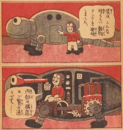 Hay muy poca información disponible en castellano sobre esta obra, pero se trata de un manga de la era Showa, que presenta a un inventor que crea un tanque con la forma de un dinosaurio, el cual es posteriormente robado por unos criminales. El científico construye un segundo tanque, en este caso con una forma humanoide y que usa armas nucleares para enfrentar a su primera creación.