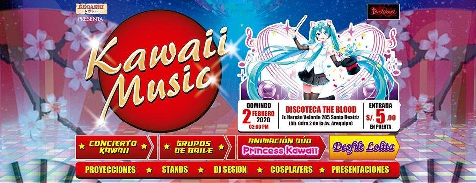 El día 2 de febrero se desarrolló en el pub The Blood el evento «Kawaii Music», organizado por Regashi. Proyecto Sugoi estuvo presente en el desfile lolita, el concurso de baile, canto y cosplay. Se pudo apreciar el esfuerzo y talento de los participantes, y, al final de la tarde, vimos un recuento de anime en el Perú.