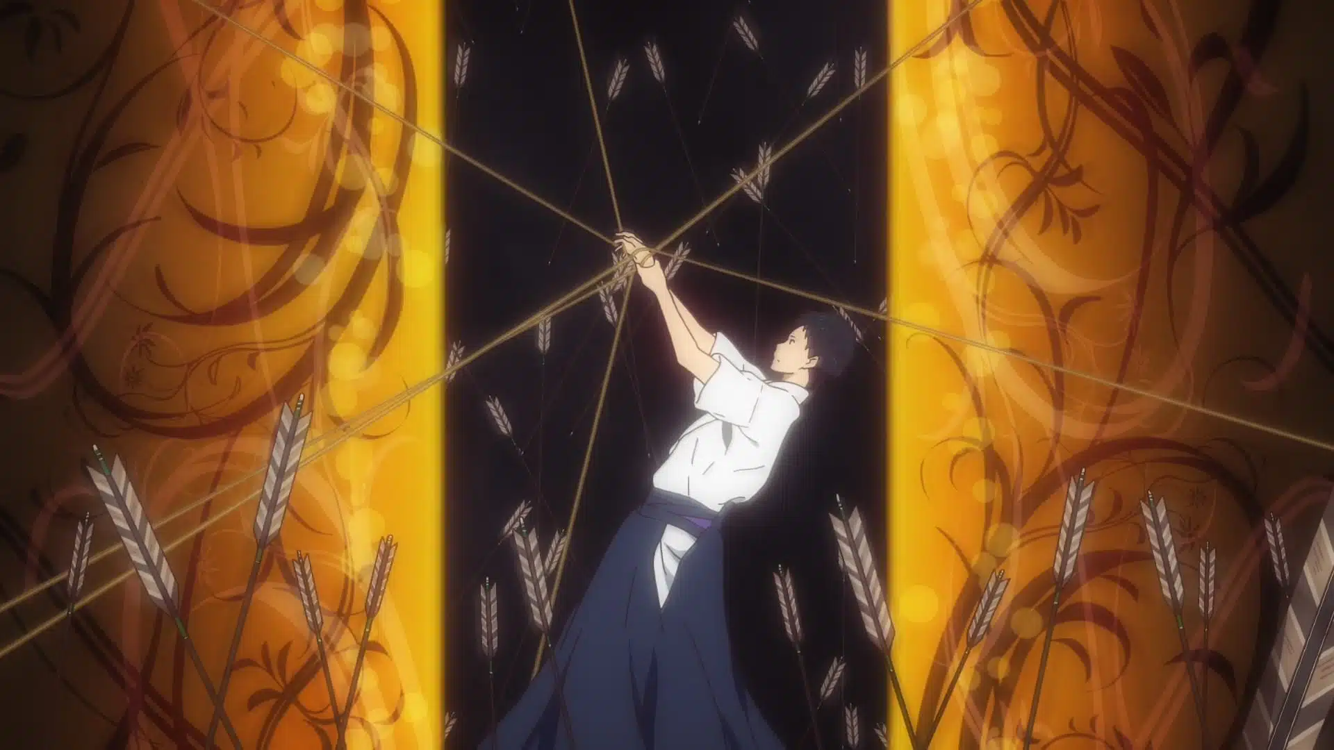 De acuerdo con la Federación Internacional de Kyūdō, la arquería en Japón era concebida como una técnica de batalla (bujutsu) que los samuráis practicaban hasta que en el Período Edo (1603-1868) se implementaron las armas de fuego y el entrenamiento militar occidental, así que la escuela militar del Shogunato Edo optó por excluirla de su currículo. Posteriormente, durante la Era Meiji (1868-1912), Yoshinobu Hamaguchi afirma que se empezó a practicar el tiro con arco japonés como una forma de vida (budo) y así nació el kyūdō. La primera vez que el pequeño Minato presencia un evento de esta disciplina se sorprende por lo artística que se ve: la solemnidad del ambiente silencioso cuando se preparan los tiros, las bellas posturas de los arqueros y, especialmente, el tsurune que corta el silencio. Al respecto, vale la pena destacar la labor del departamento de sonido de esta serie que bajo la dirección de Tsuruoka Yota, consigue un riguroso detalle en el doblaje de los efectos sonoros de las flechas cuando son liberadas al aire y cuando aciertan al pasto o a la diana enfatizando así la experiencia sensorial del kyūdō como arte. Sin embargo, esta disciplina es más que la belleza (bi) que aprecian los espectadores en un torneo o evento.