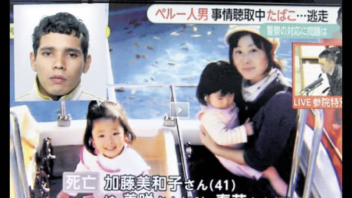Para la defensa, Nakada ingresó solo a robar dinero, pero terminó asesinando de puñaladas a Minoru Tasaki (55), su esposa Misae (53), Kazuyo Shiraishi (84), a Miwato Kato (44) y a las menores Misaki (10) y Haruka (7).  Al ser encontrado por las autoridades, Vayron decidió cortarse los brazos y lanzarse desde el segundo piso de la vivienda donde se encontraba, sufriendo una fractura de cráneo, por lo que estuvo internado en un hospital.